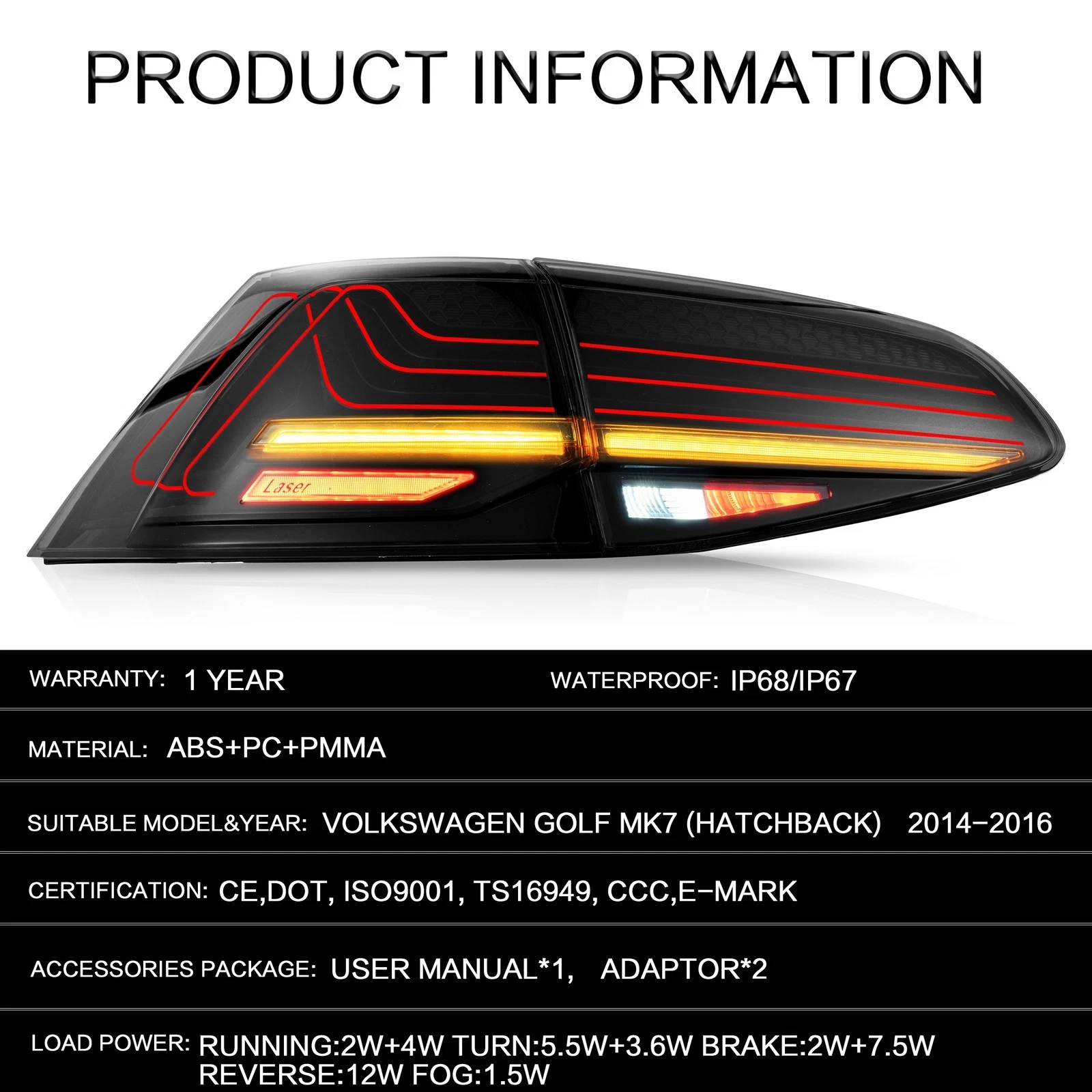 Fitment:Fit For Volkswagen VW Golf MK7 MK7.5 2014 2015 2016 2017 2018 2019 (Compatible with Hatchback only).Note: For GTI/R models, you need to purchase additional wiring harness and decode the vehicle (with OBD11 or similar), related tutorials you can find them on YouTube.